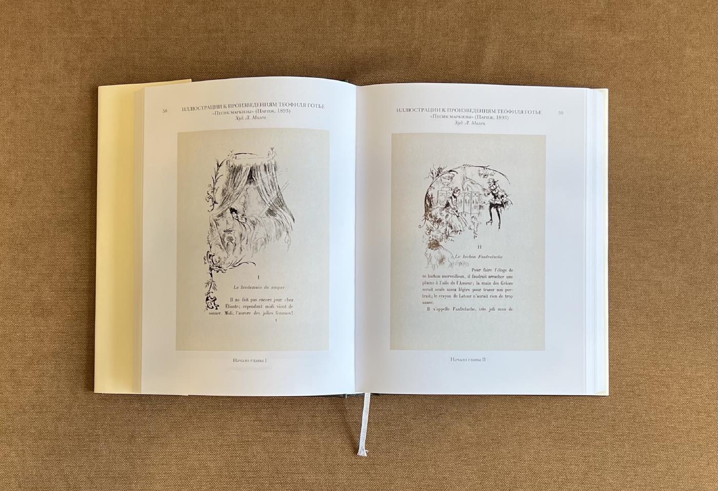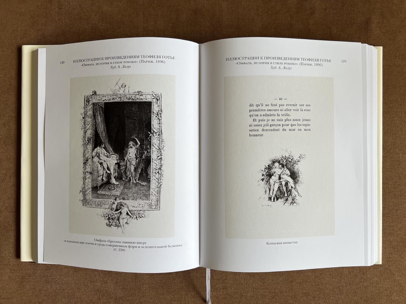 Специально для настоящего издания были разысканы и приобретены комплекты замечательных иллюстраций из двенадцати редких изданий сочинений Готье, вошедших в настоящий двухтомник. Выполненные в разной технике — от лёгких, летучих акварелей до тщательно проработанных гравюр, — эти иллюстрации дают яркое представление о мире героев писателя. В настоящем томе скрупулезно воспроизведены также элементы оформления тех изданий, включая обложки и переплёты, виньетки и заставки, красиво свёрстанные страницы.